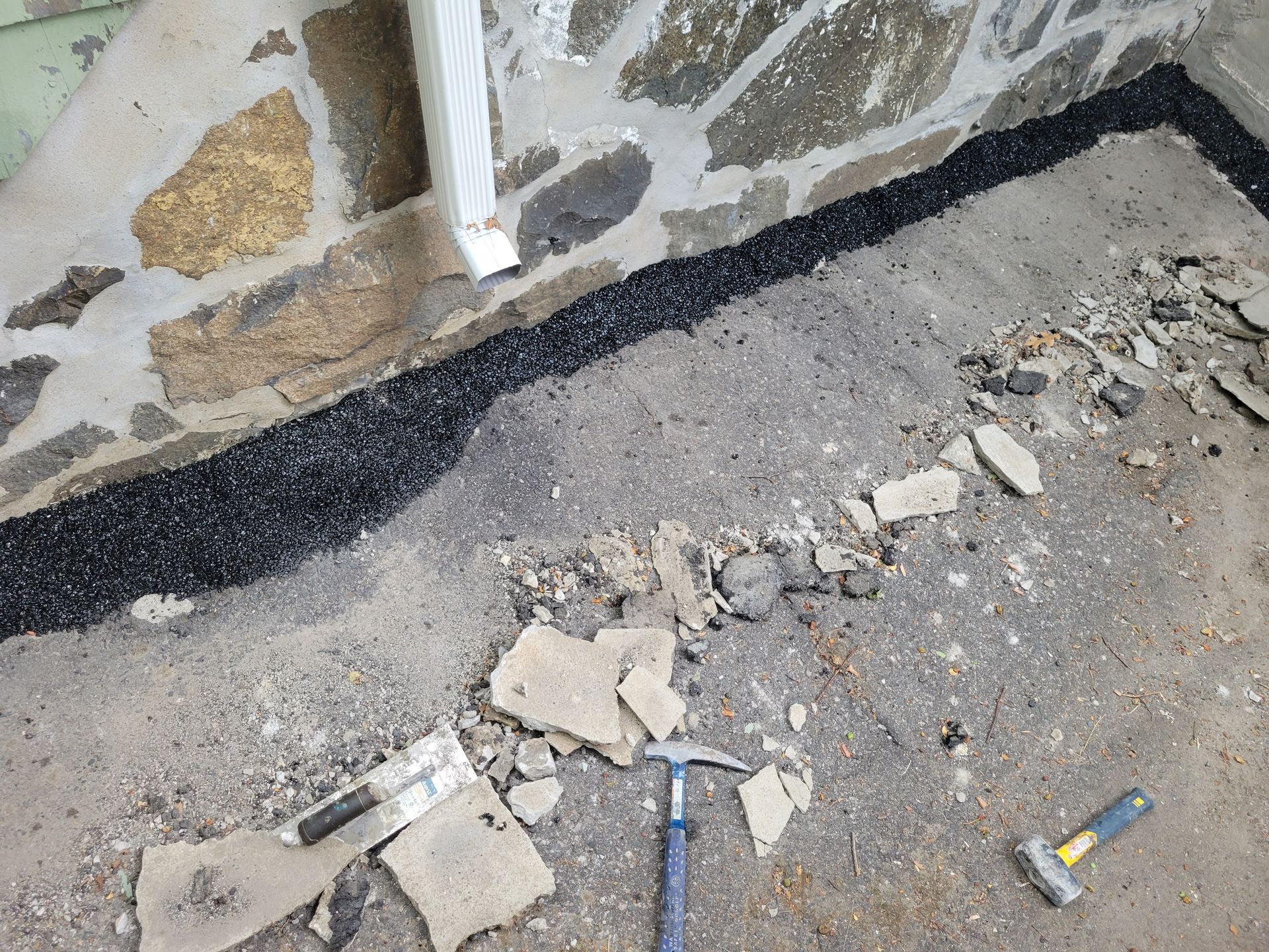 We will clean out the damage and prep for a new filling of fresh asphalt, then compact and shape it to achieve proper grade and slope away from the foundation.