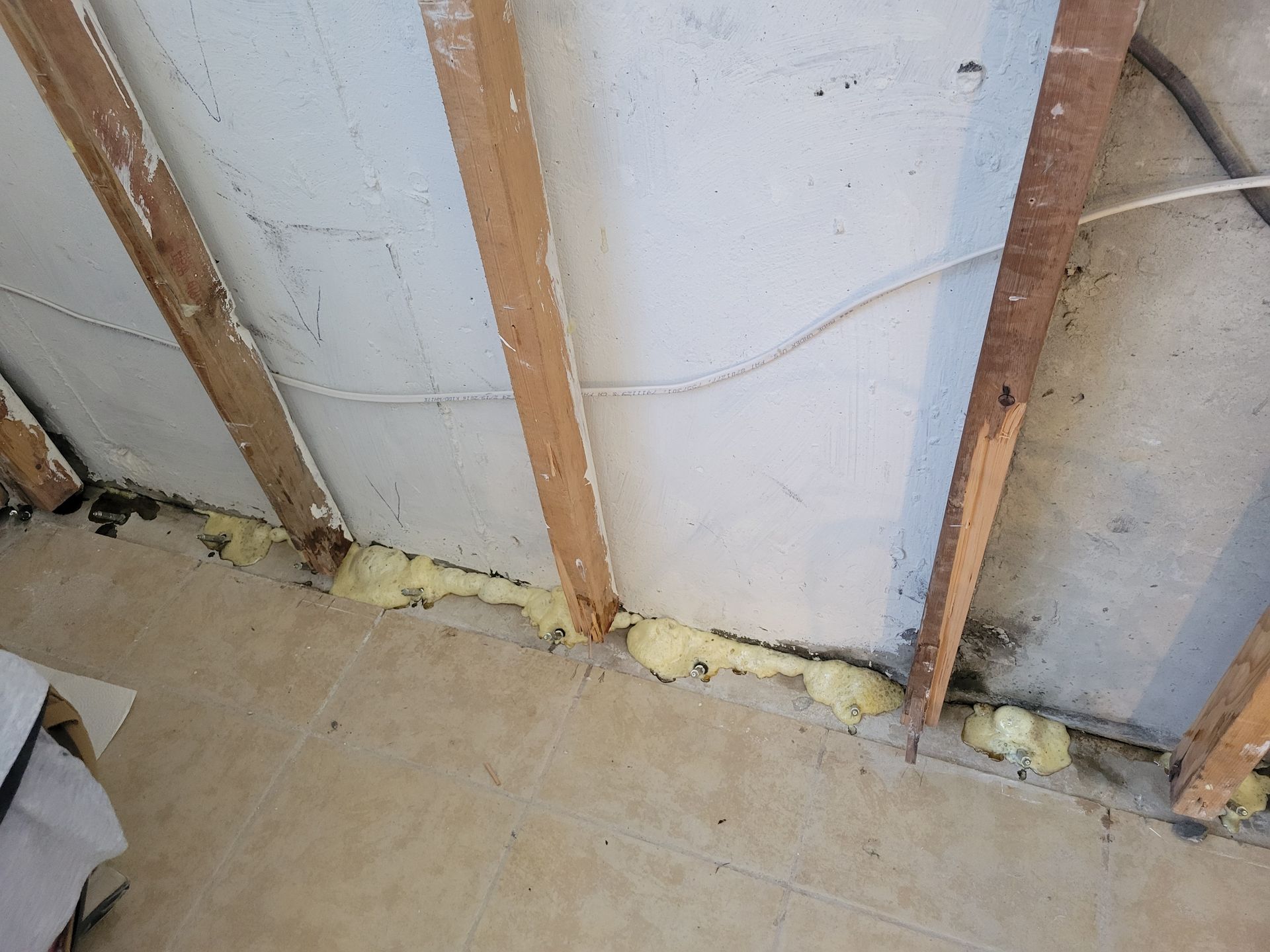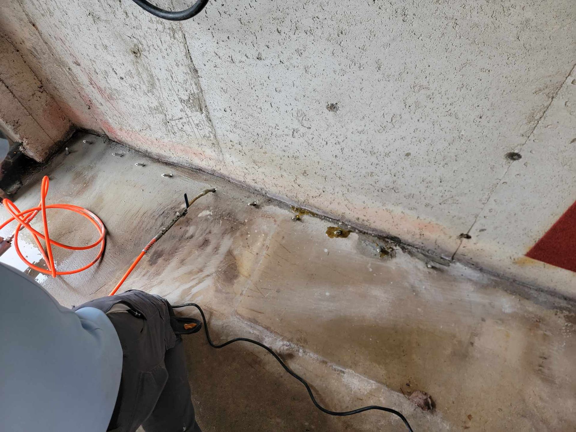 We will inject the cove joint with a solution of closed-cell polymer resin. The resin is a hydrophobic material, specifically designed for this application. It is water-activated, which means that even if the leak is active, we can get it to stop.